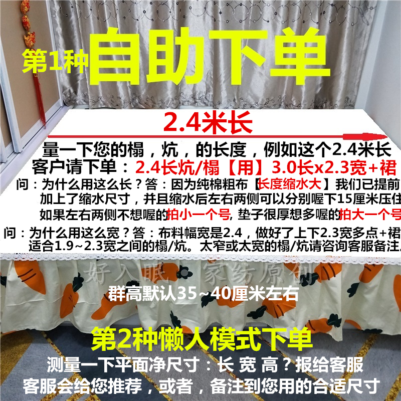 Pure Cotton Linen Old Coarse Cloth Thickened Kang Single Earth Bed bed Tutami Bedsheets One side bed Skirt Large kang Single Anti-slip set for Four Seasons