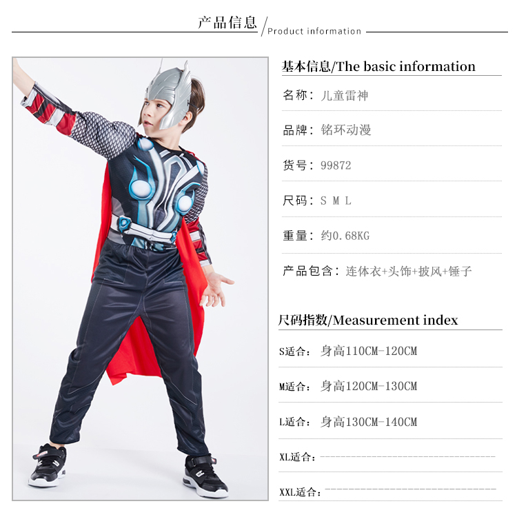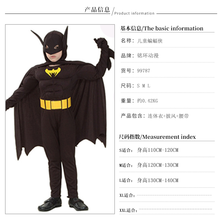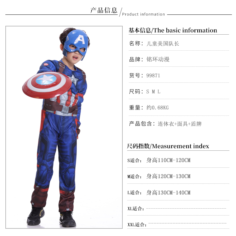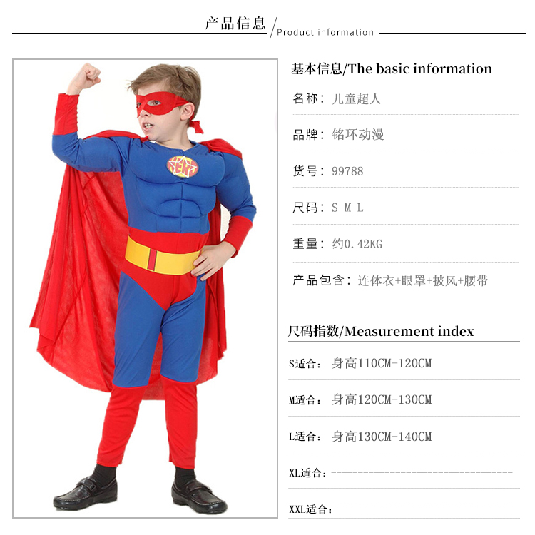 Halloween children's muscle clothing cosplay USA Captain Iron Man Superman Spider-Man Show Clothes