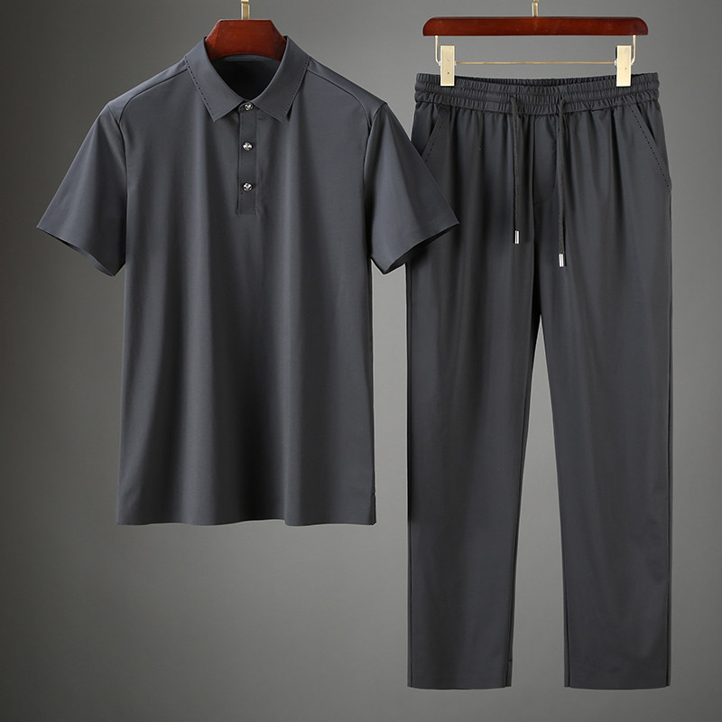 JSBD high-end light luxury ice silk two-piece men's seamless lamination ultra-thin summer silky lapel leisure sports suit