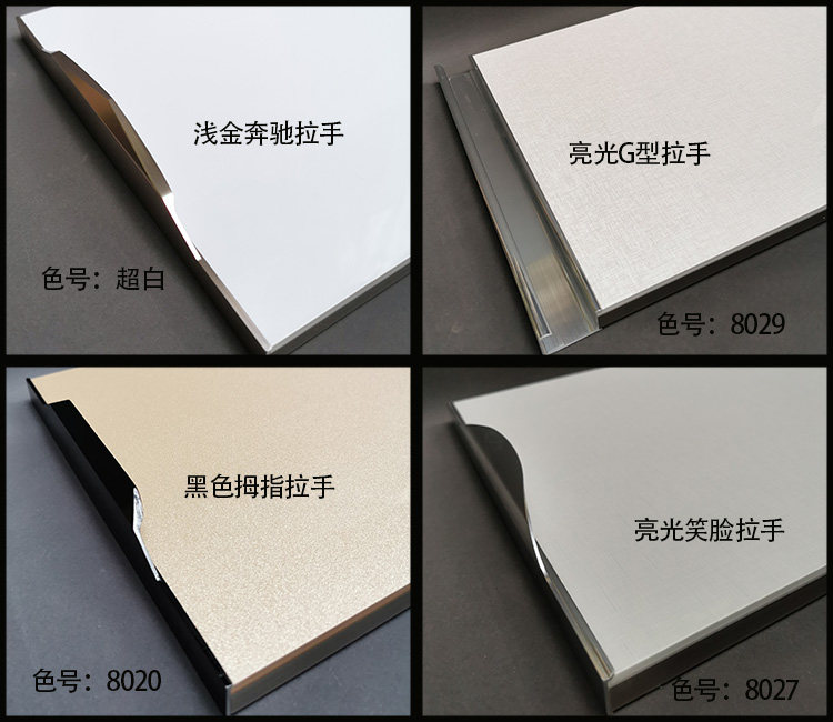 Black F handle-Contains handle Multi-layer solid wood acrylic door panel-Does not contain handle Black Thumb Handle-Contains handle Black G-type handle-Contains handle