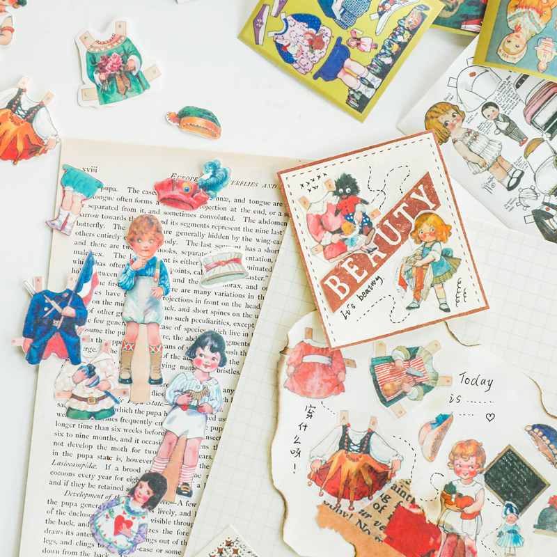Tomato doll dressing and paper tape cute retro character girl with off-type paper hand account diy sticker