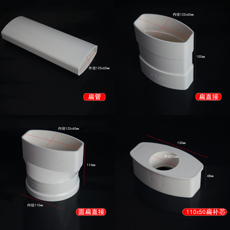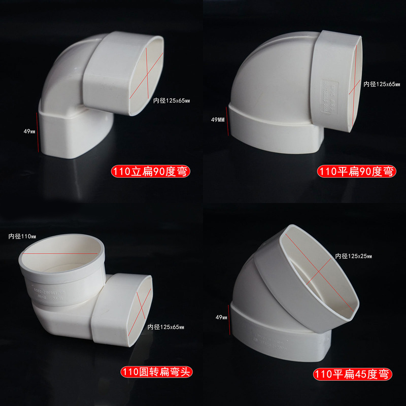 PVC imitation Rifeng drainage 110 square flat pipe fittings direct elbow tee oval accessories Powder room shifter