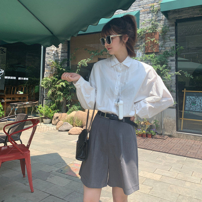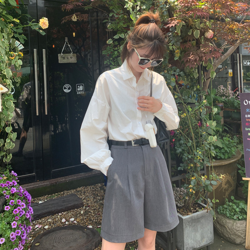 50% Pants Woman Straight Cylinder Port Taste Casual Bf Wind Tooling High Waist Wide Leg Suit Shorts Women Summer Loose slim 50% pants