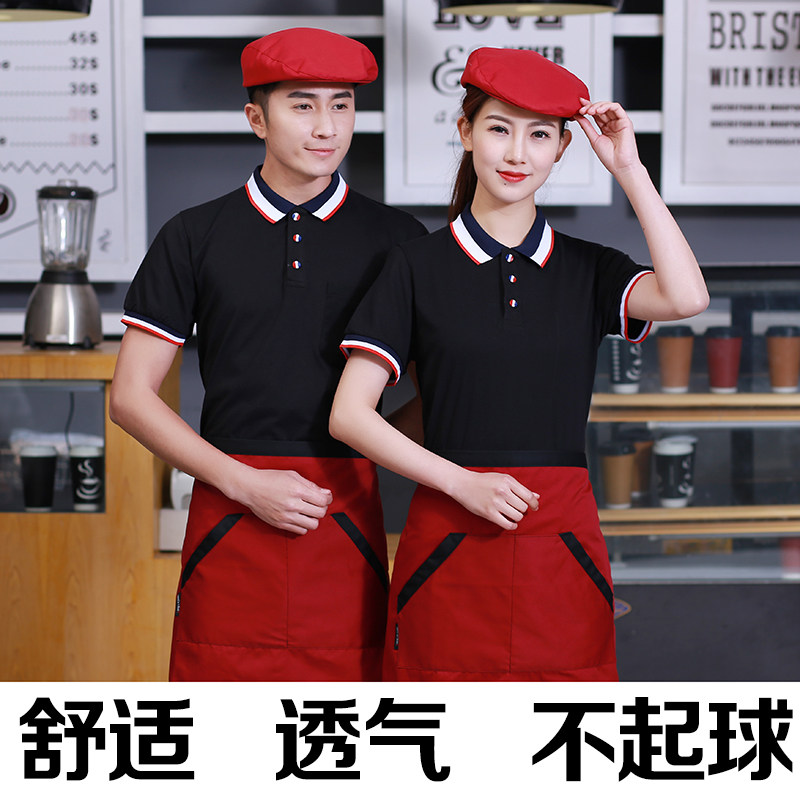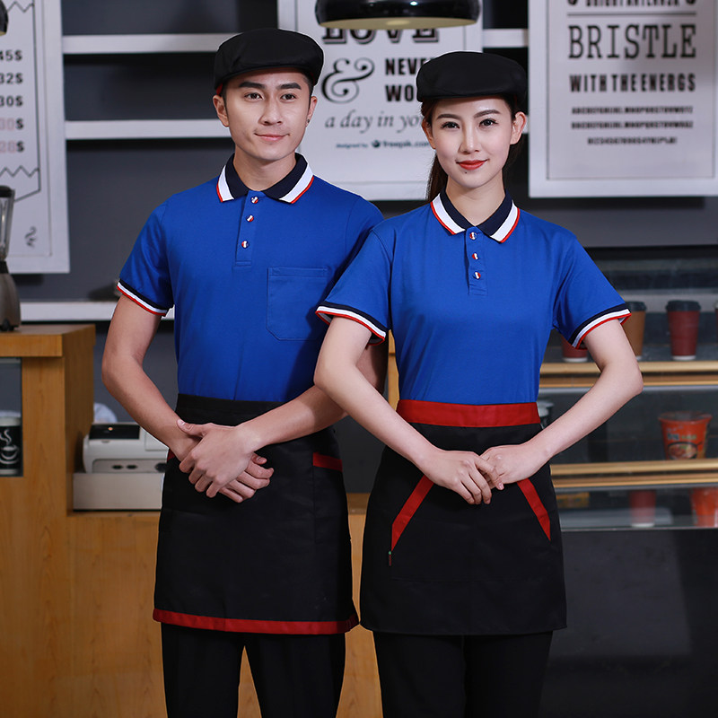 Summer waiter overalls short-sleeved milk tea restaurant hot pot restaurant fast food restaurant supermarket dining overalls T-shirt