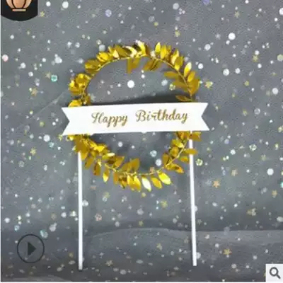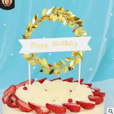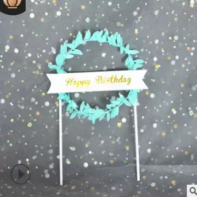 New cake decoration Mori green leaf blue powder birthday party decoration Mori dessert table cake plug-in