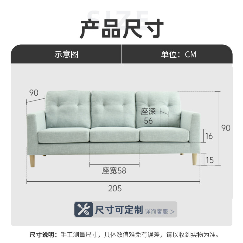 (Live room spike) CBD small apartment sofa publishing art modern minimalist Nordic three-seater sofa D019SF