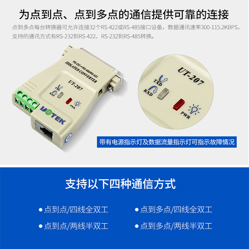Yutai rs485 422 converter 485 to 232 photoelectric isolation converter UT-207
