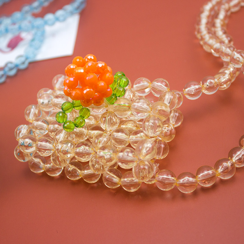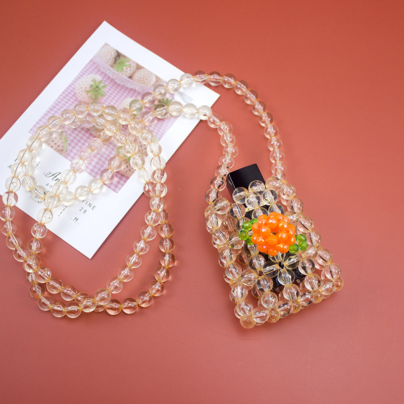 New transparent woven bag orange soda hand-beaded finished oblique cross small waist bag decoration with mini bag