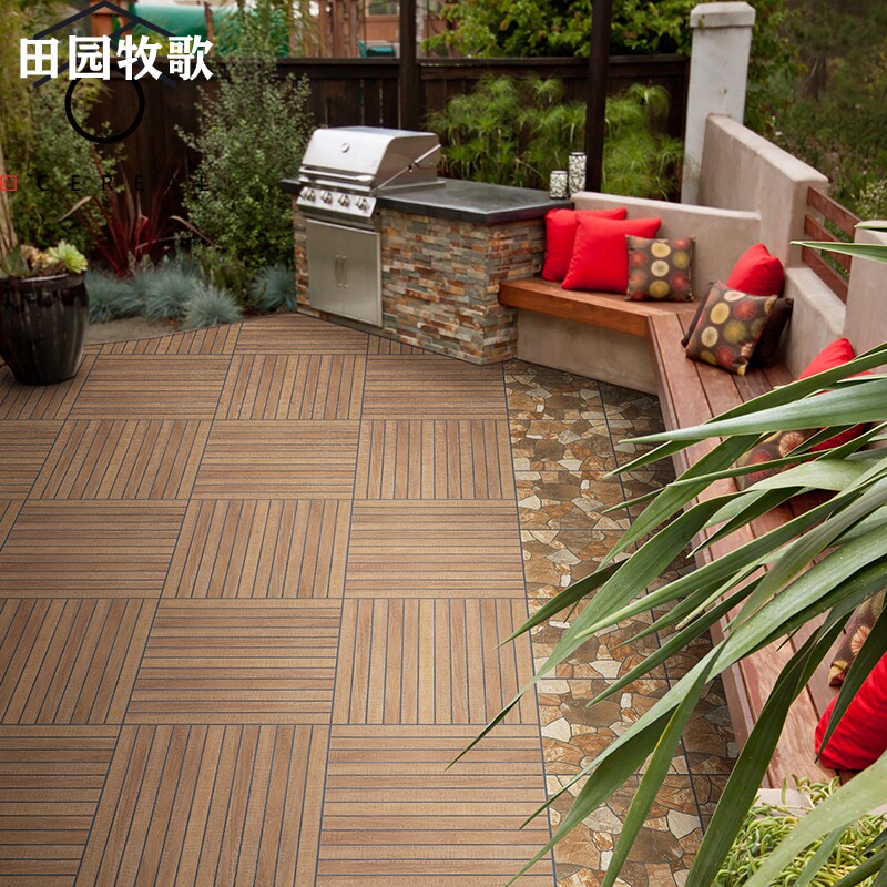 American-style wood grain floor tiles 600x600 balcony outdoor courtyard matte non-slip floor tiles concave and convex surface antique tiles