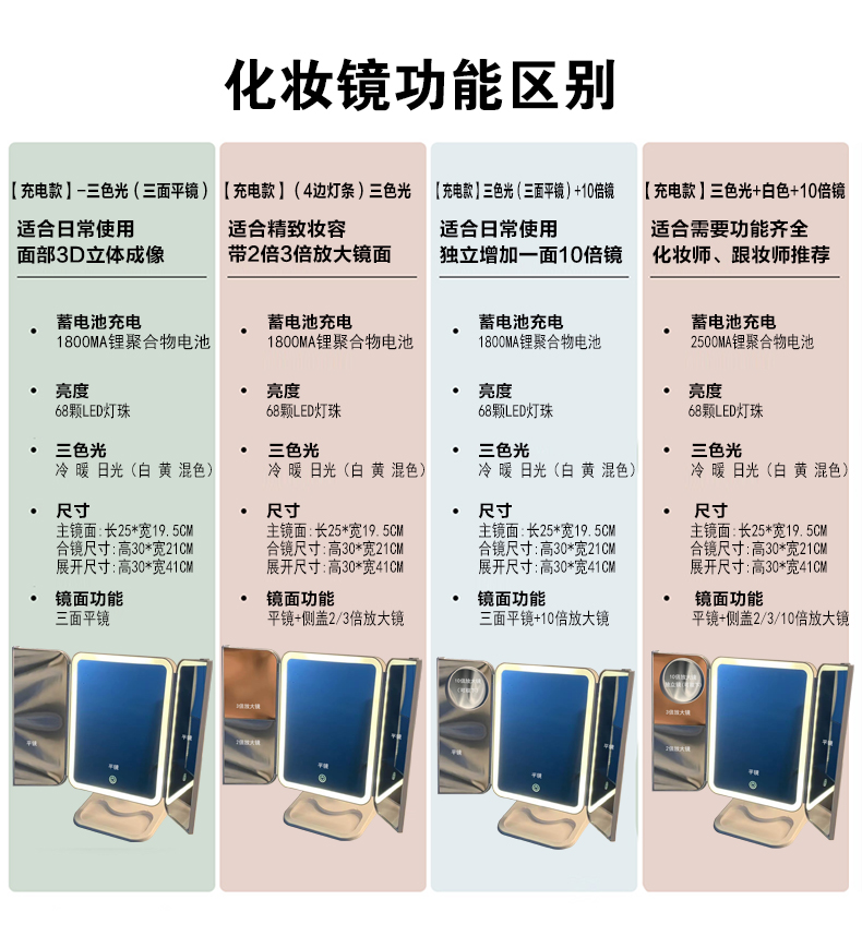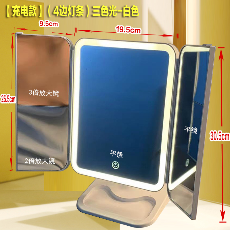 Gift gift for Christmas gift to girlfriend and friend three-sided folding with light LED makeup mirror tabletop desktop vanity mirror