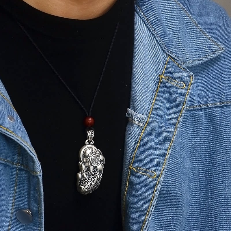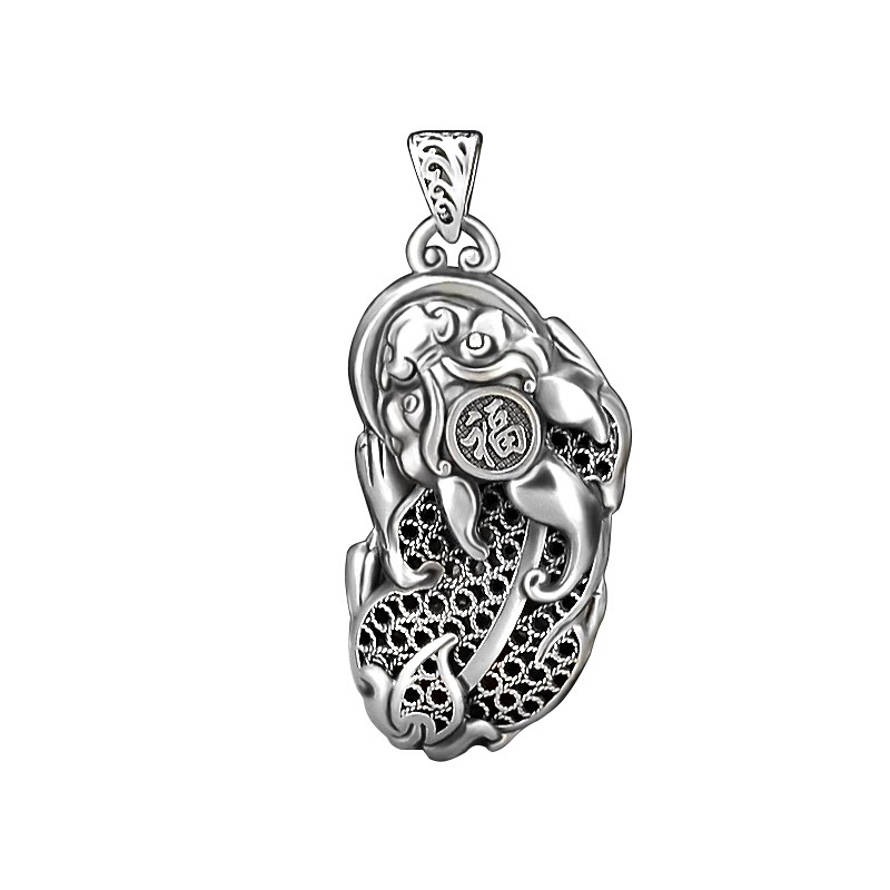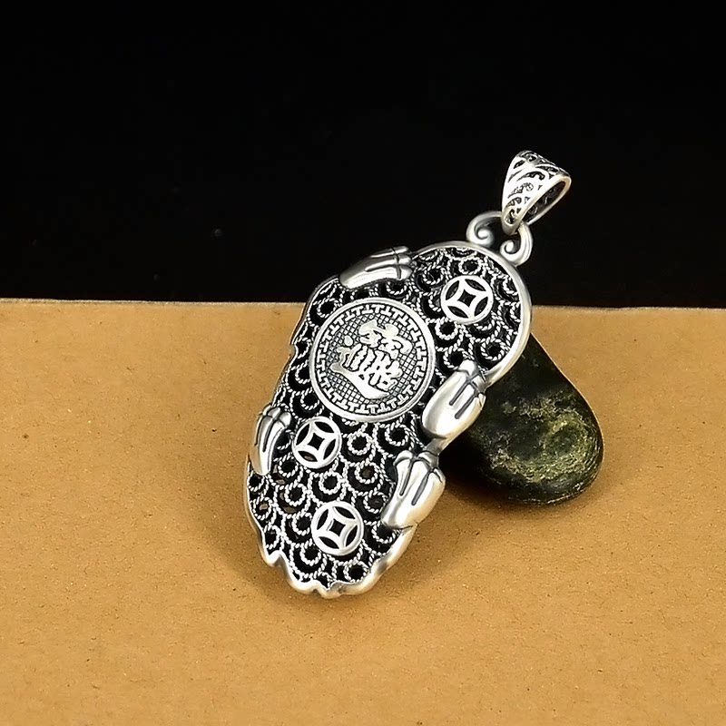 S999 pure silver Merchants Pendant Men Women's Money Chain Pendant Foot Silver Hollowed-out Leather Chew Ancient Farin Silver Pendant