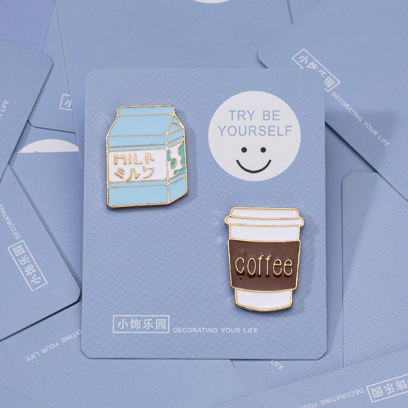 Cute small accessories a pair of cartoon milk coffee brooch pin girl small fresh ins tide personality accessories
