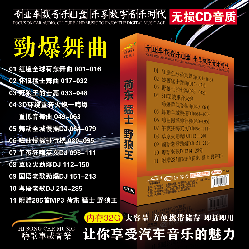 Ho Tung Menserai Wild Wolf King with Dish Dj Dance Classic Dance's Songs High Songs Steam Vehicle USB High sound quality 32g