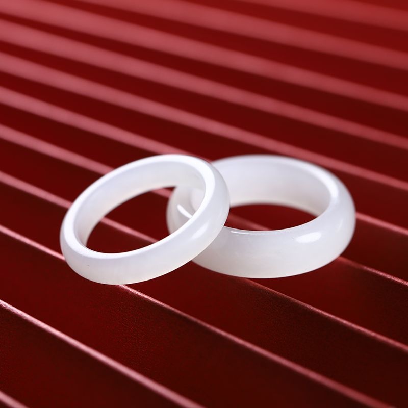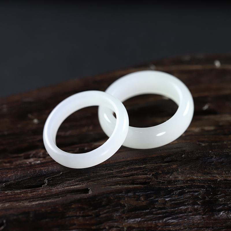 Natural Goat Fat White Jade Ring and Tian Yuzu Ring Lovers for the Withdrawal Ring Retro Jade Men Female