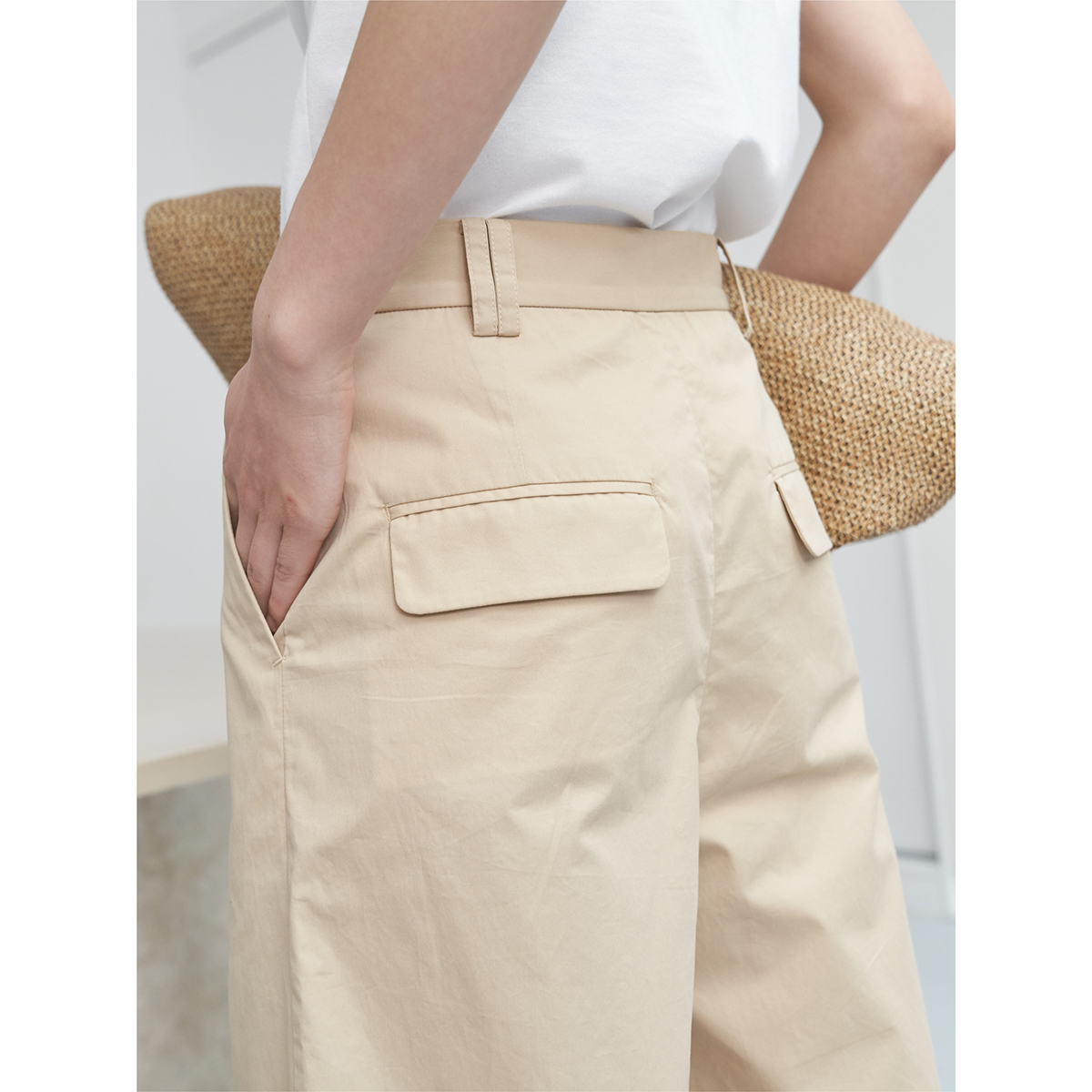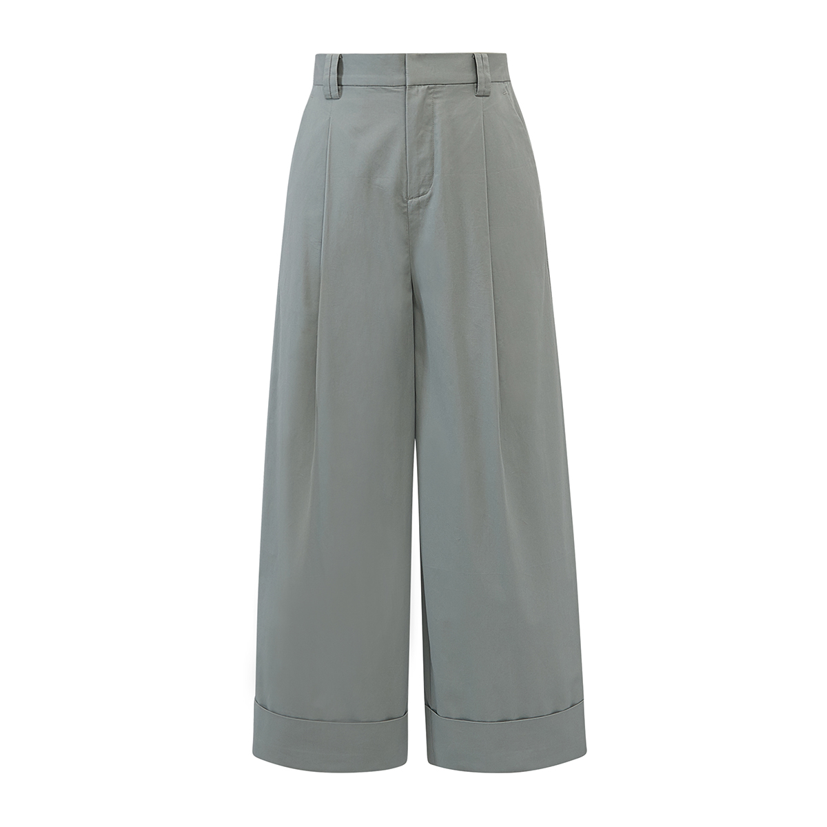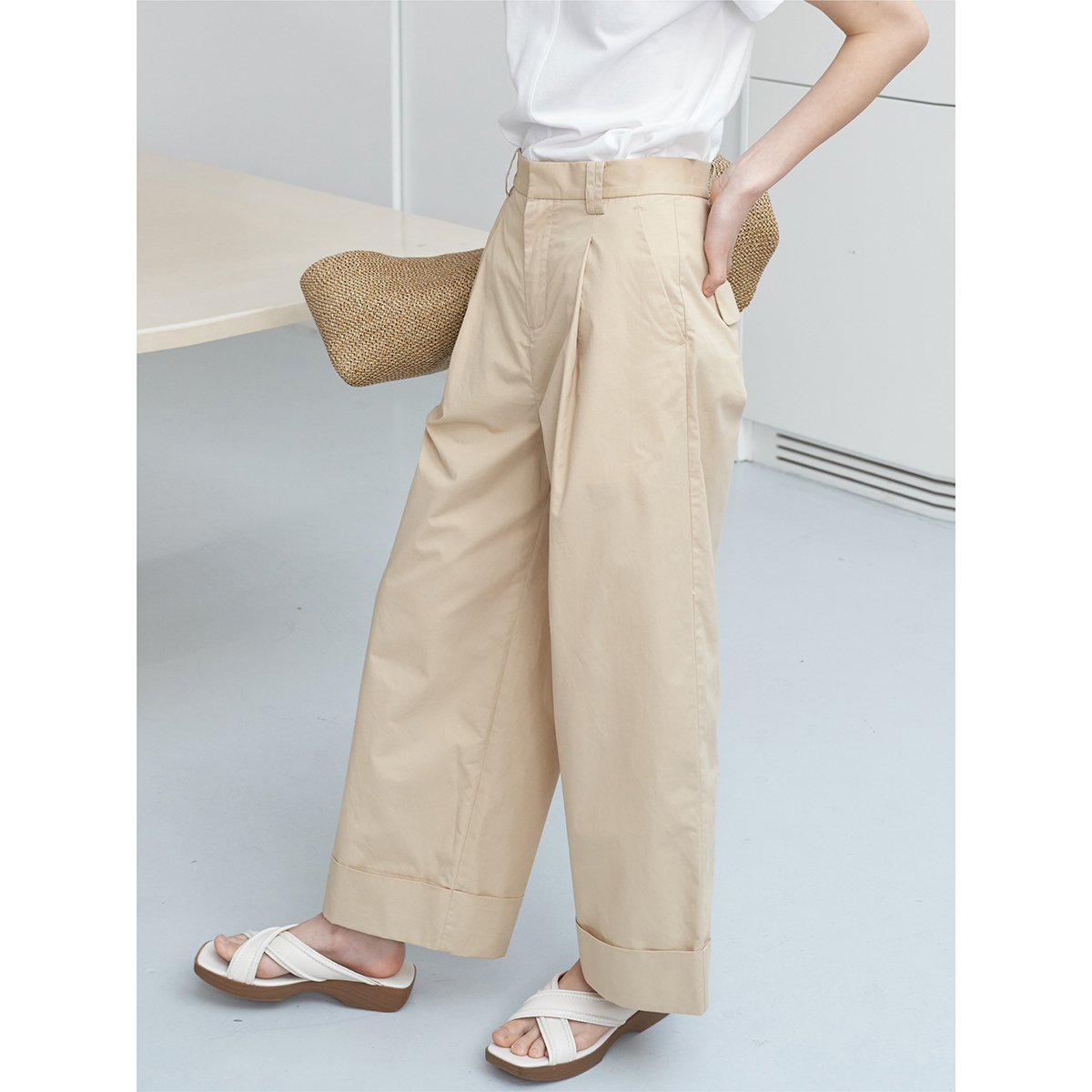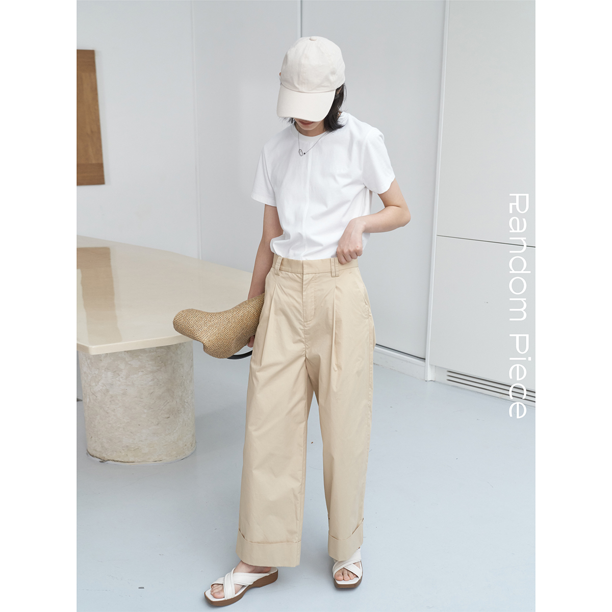 RandomPiece Shuttle Cotton Loose Straight Drum Pretty Wide Footed Curl Waist Double and Casual Long Pants