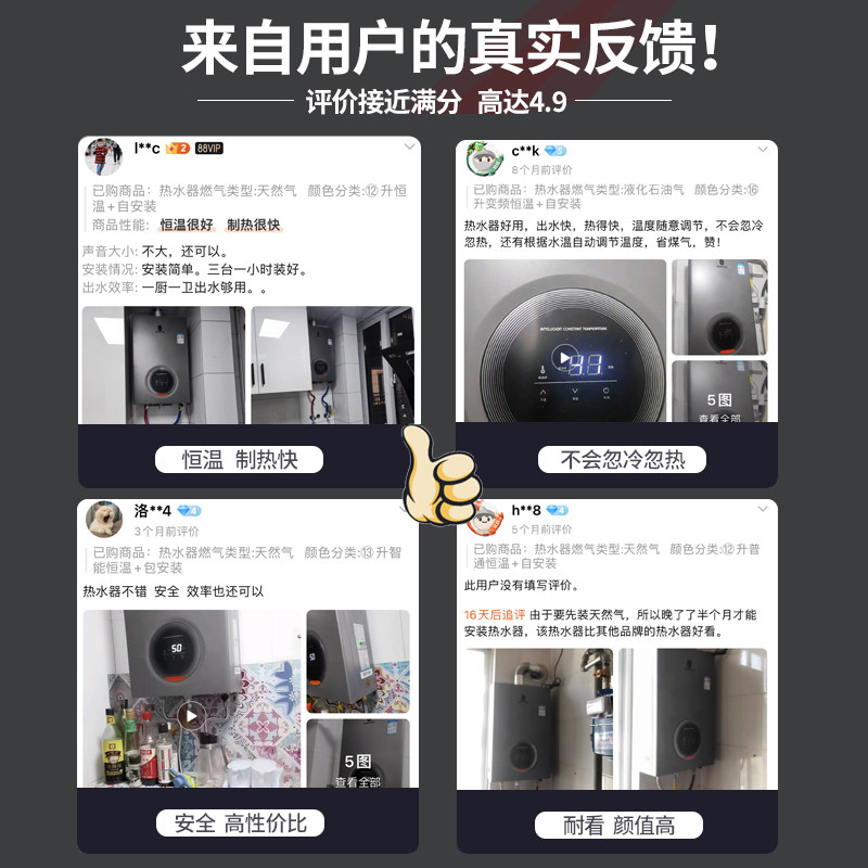 Ashidanton water heater gas household gas bath liquefied gas intelligent constant temperature gas strong exhaust type mute