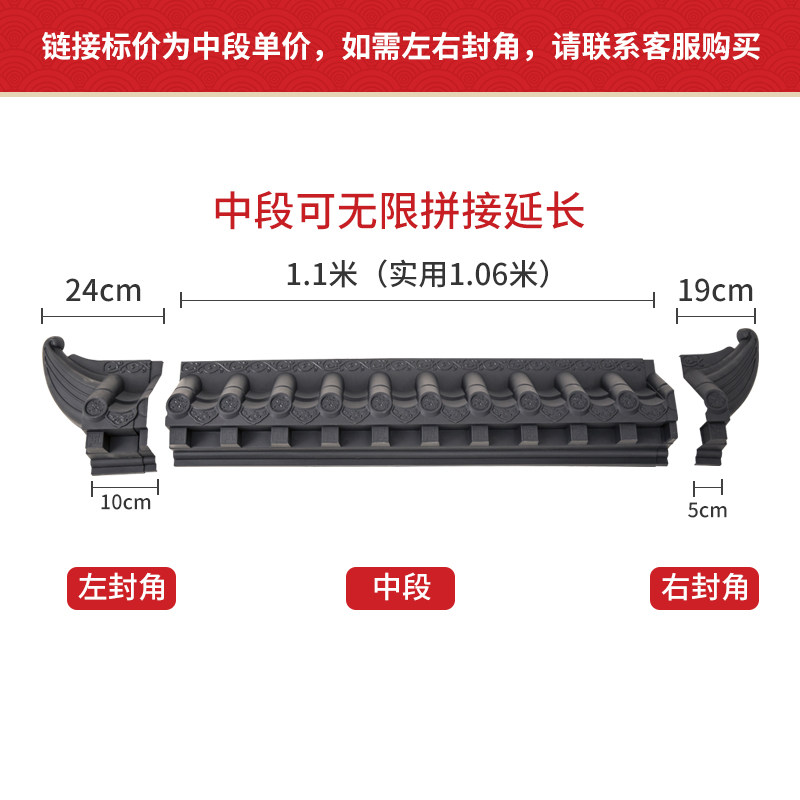 Antique decorative eaves resin tile Antique tile decorative tile Huipai retro door head Chinese-style ancient building integrated tile wall decoration
