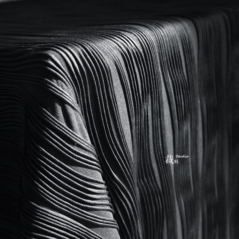 Black Corolla three-dimensional heavy texture fabric striped stretch cotton line creative clothing designer fabric