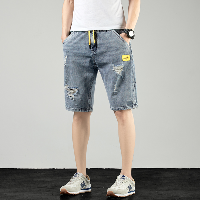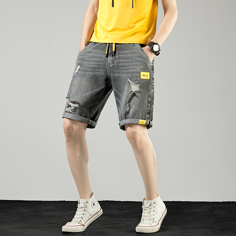 Broken Hole Denim Shorts Men 50% Pants Loose large size Outer wear 5 points 4 40% Pants 2020 New pint Summer style