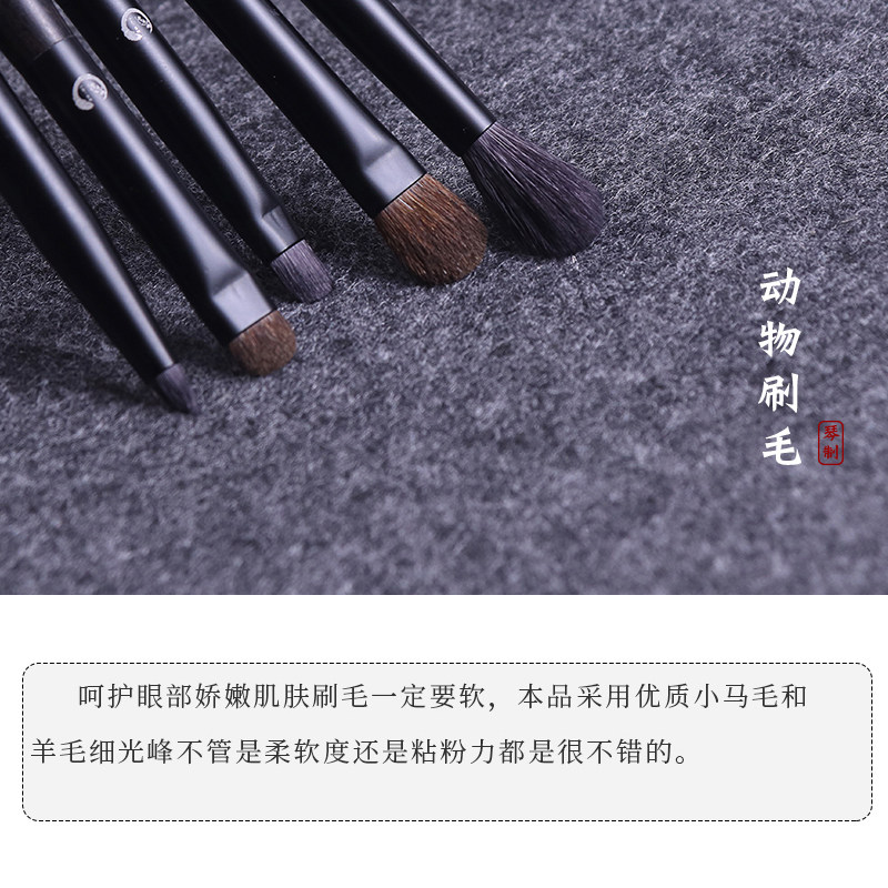Qin makeup brush ink color series 5 eye shadow brush color base cone detail brush animal hair set