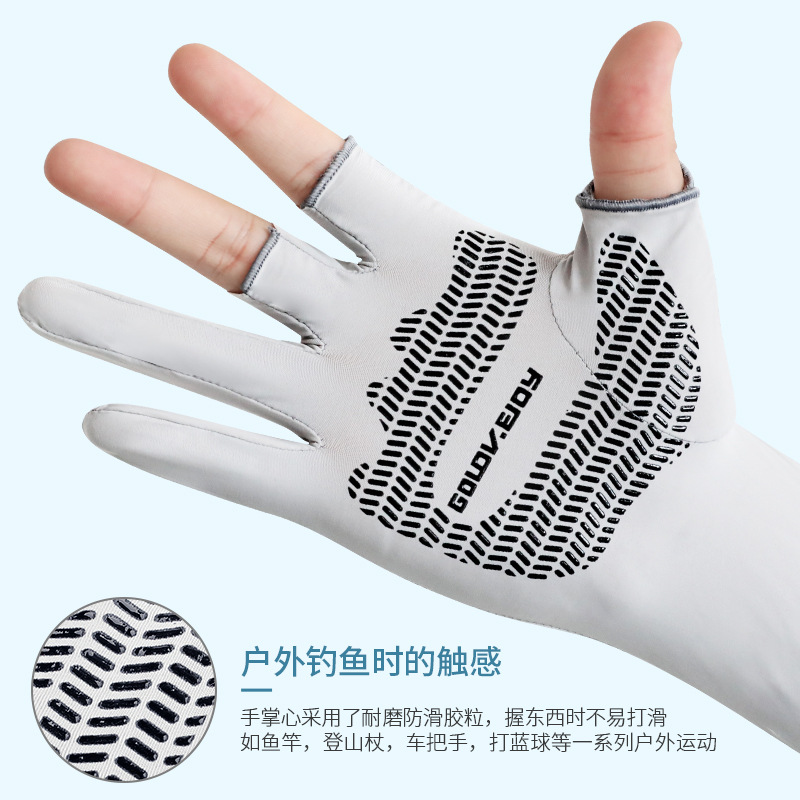 Summer Ice Silk Sunscreen Sleeves Drive Outdoor Riding Fishing Anti UV Speed Dry Leakage Finger Gloves Anti Slip Breathable