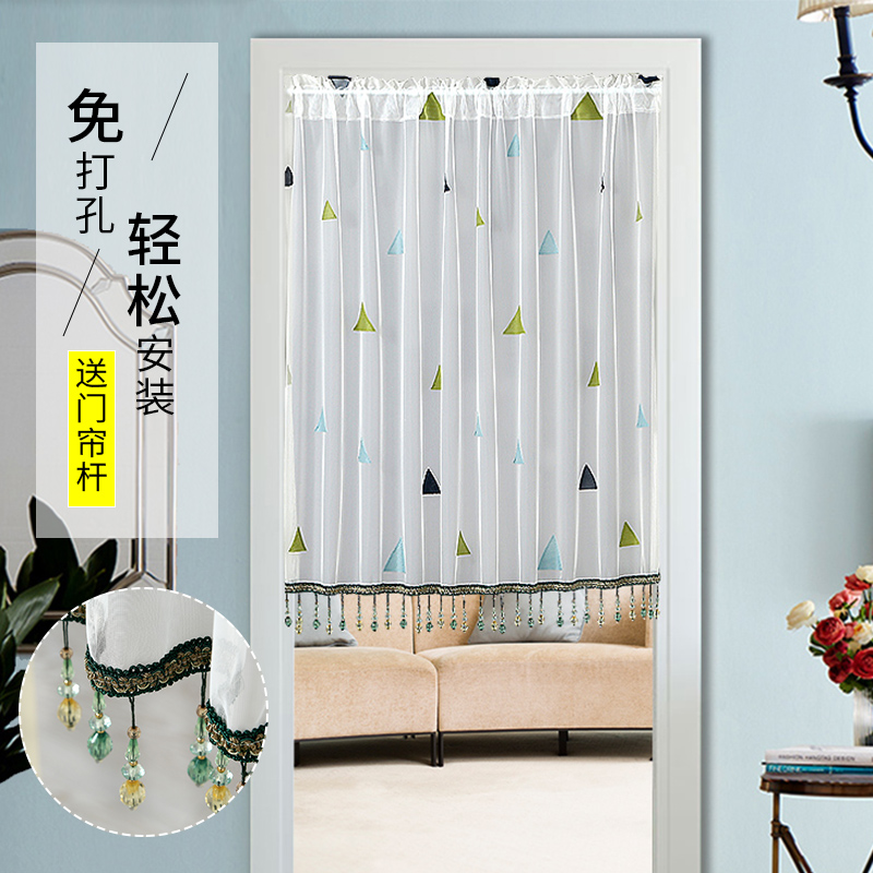 Door Curtain Partition Cord Fabric Art Net Home Free Stiletto Lace Door Curtain Cute Teenage bedroom Semi-cut Decorative Curtain