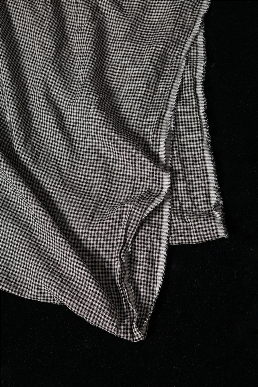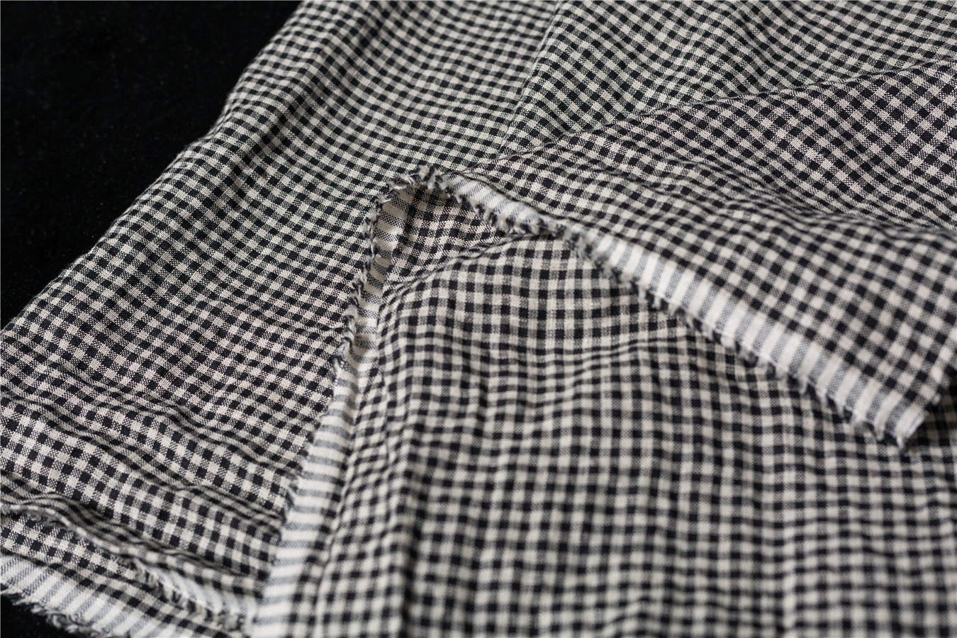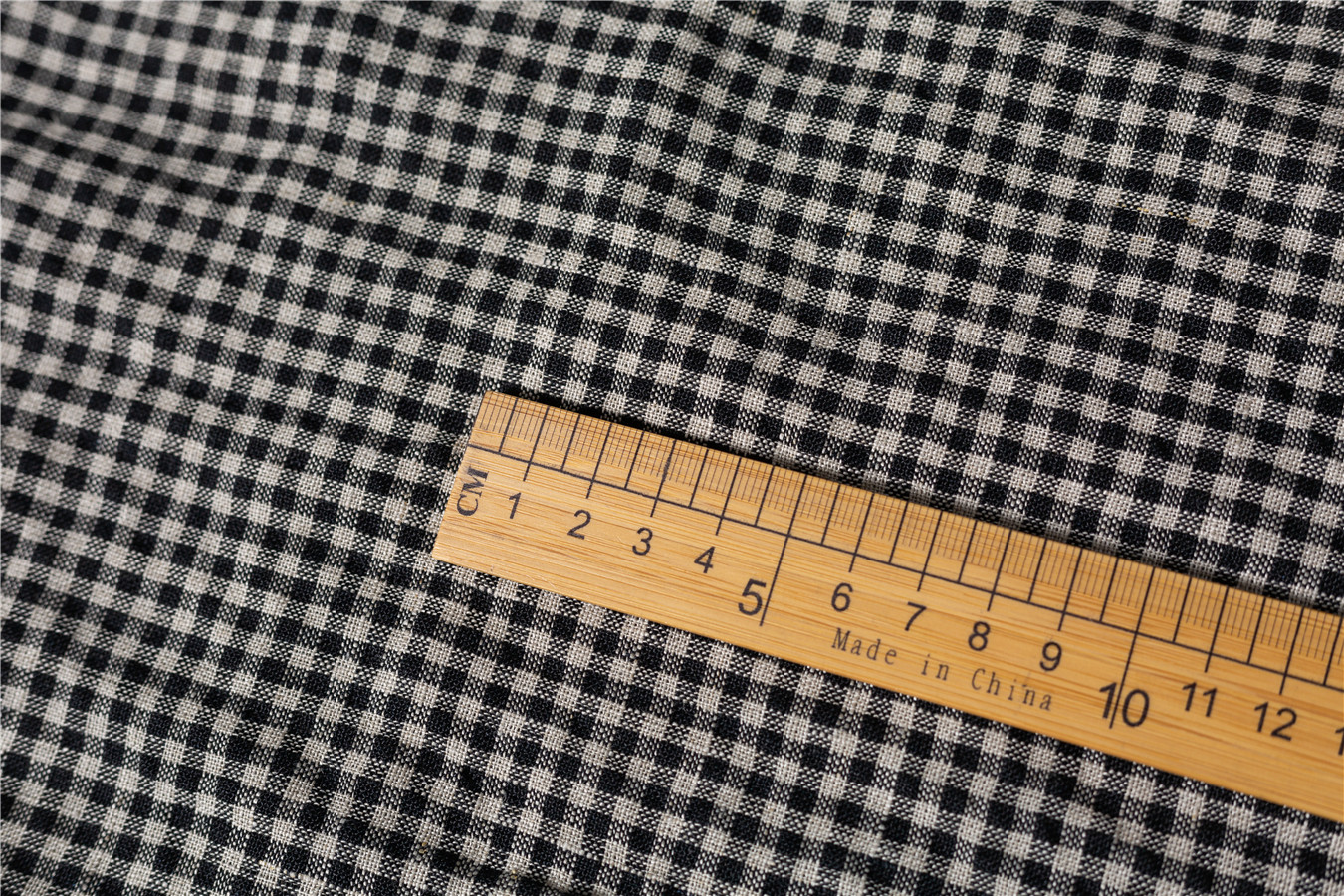 7 27 art retro dark white small plaid flax washed fabric linen color woven shirt pants fabric C021