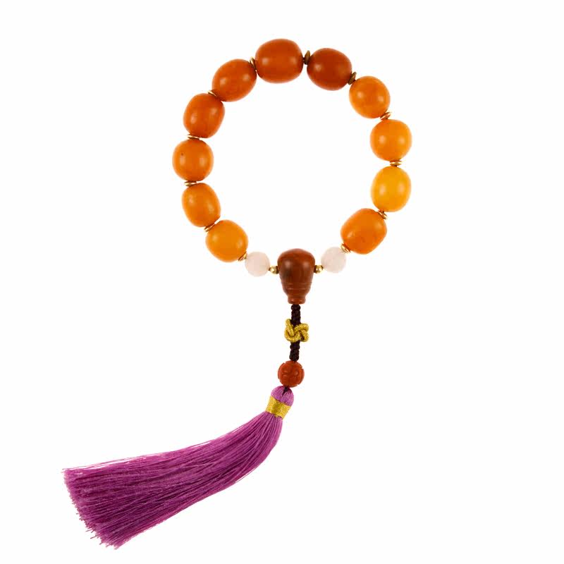 29 3 grams of natural old honey jujube hands handle piece of amber Buddha bead