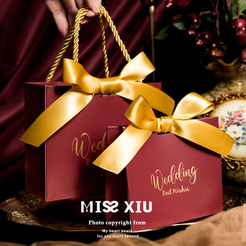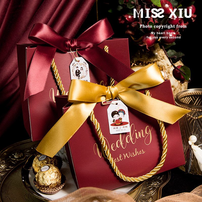 MISSXIU wedding time portable] new wine red wedding candy box personality creative wedding knot hand carrying candy box