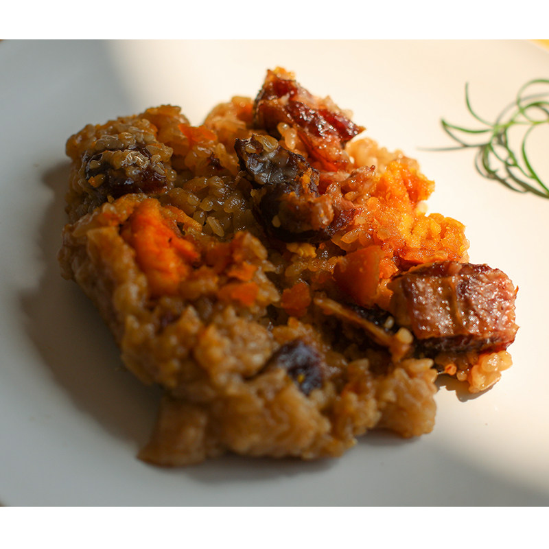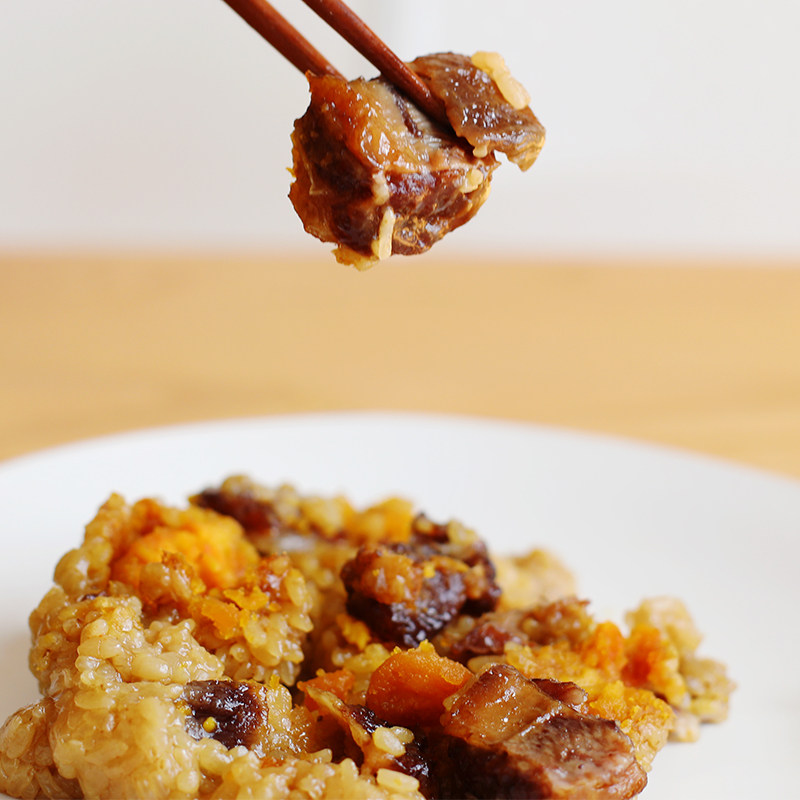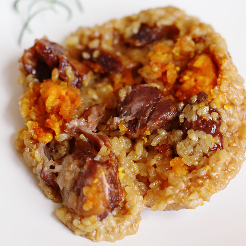Glutinous rice, drinking water, beef, salted egg yolk, soy sauce, salt, etc.