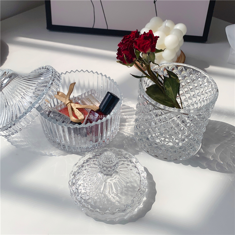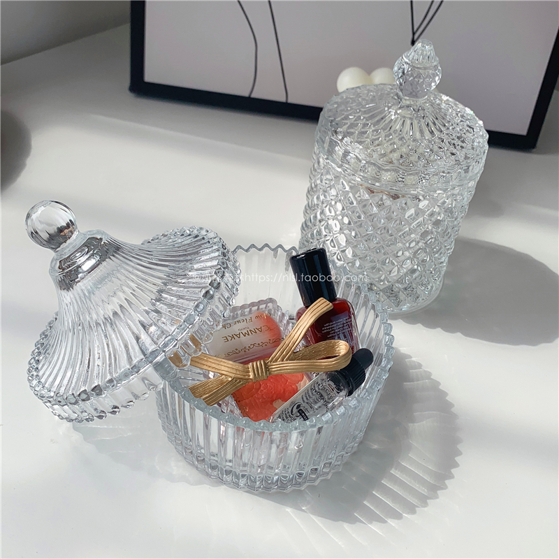 ins wind transparent glass jar jewelry cotton swab storage box embossed crystal European-style storage jar storage