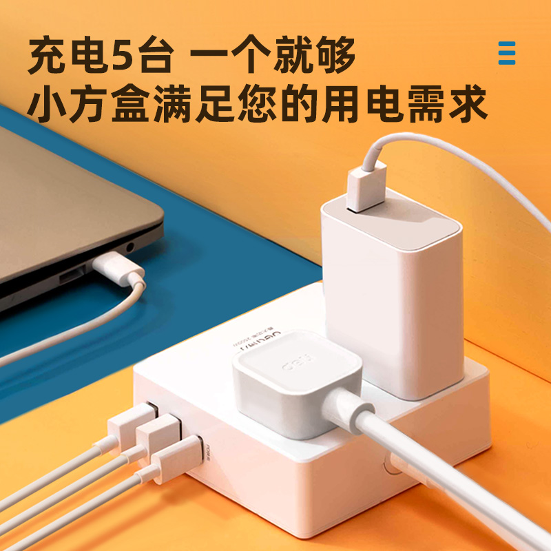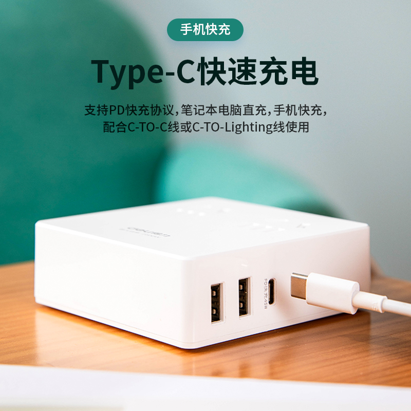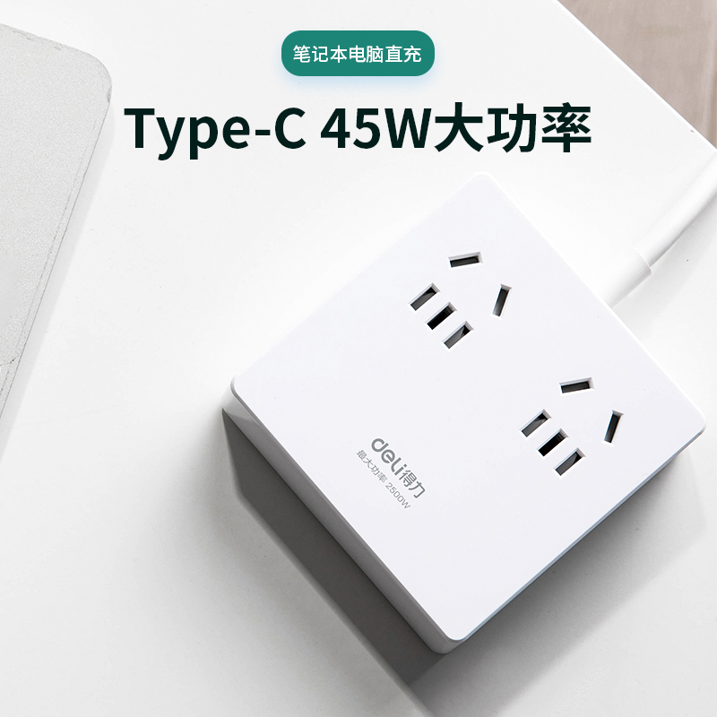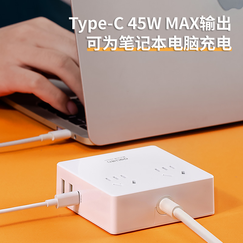 The right-hand PD QC Quick-filling socket (45W) extends the line plugging 2USB Type-C