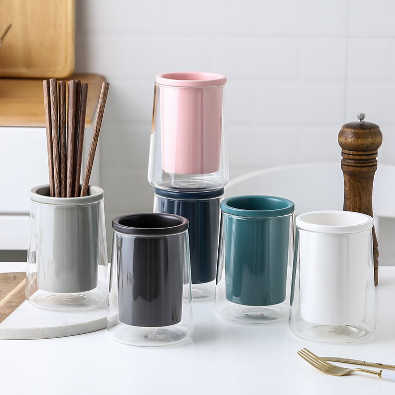 Color glaze chopstick tube with glass seat-Matte black glaze Chopstick tube with glass seat-Matte white glaze Chopstick tube with glass seat-Matte pink glaze Chopstick tube with glass seat-Matte blue glaze Chopstick tube with glass