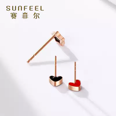 Saifir 18K gold rose gold peach heart five-pointed star simple temperament earrings ear needle ear stick to send girlfriend gift
