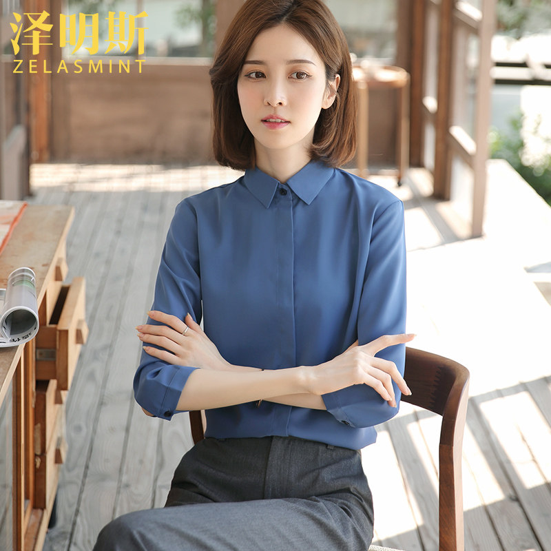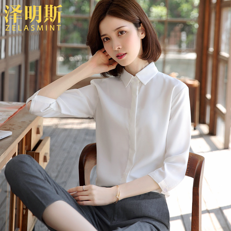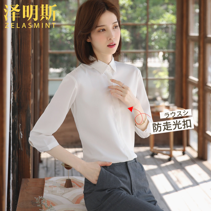 Zemings chiffon white shirt women's professional formal interview tooling 2021 spring and summer thin work clothes tooling shirt