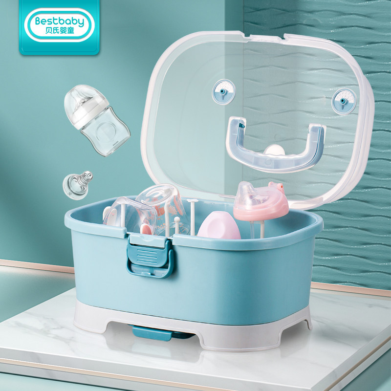 Baby bottle storage box portable large baby tableware milk powder storage box drainage with lid dust-proof drying rack