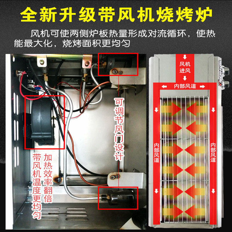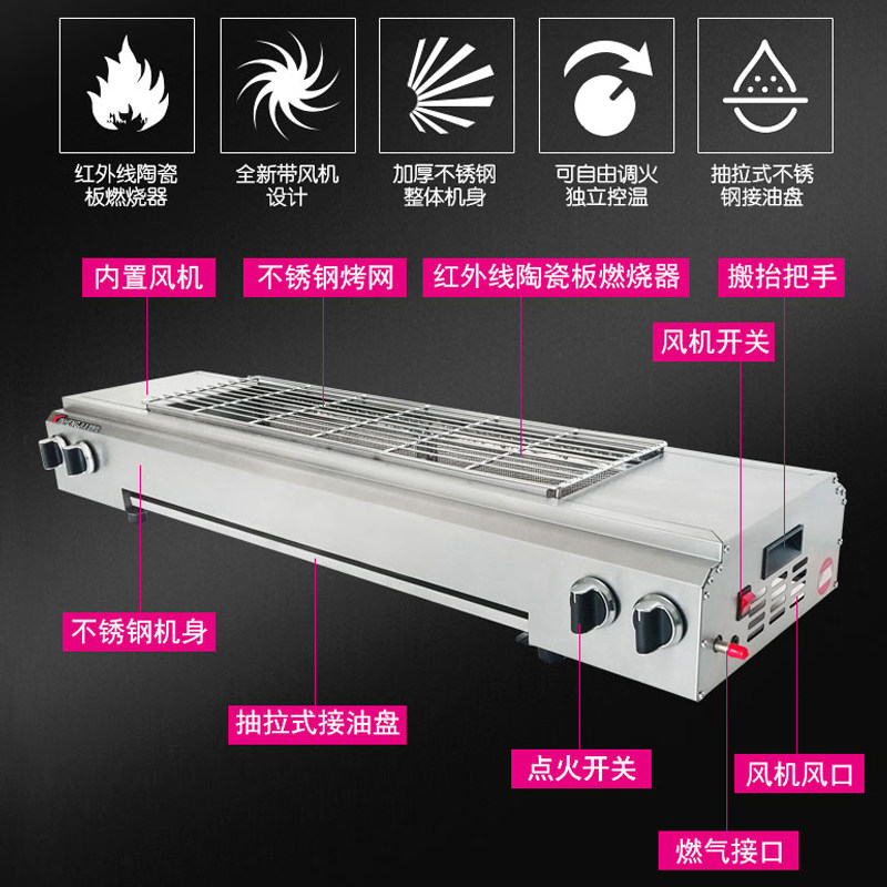Smoke-free barbecue grill Commercial household outdoor gas liquefied gas Natural GAS with fan skewers Environmental protection barbecue rack