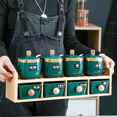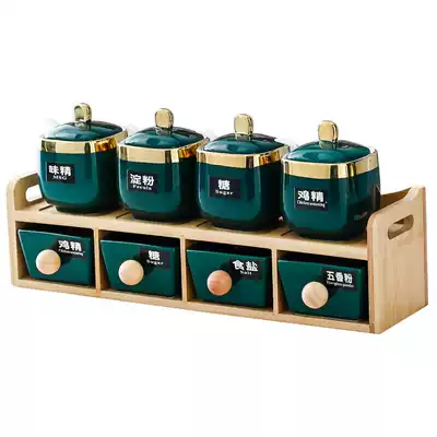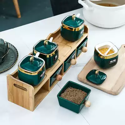 Nordic ceramic seasoning box Household seasoning jar Kitchen seasoning jar combination set seasoning storage box shelf