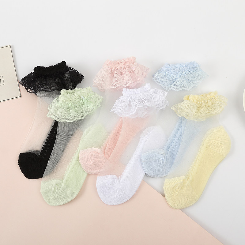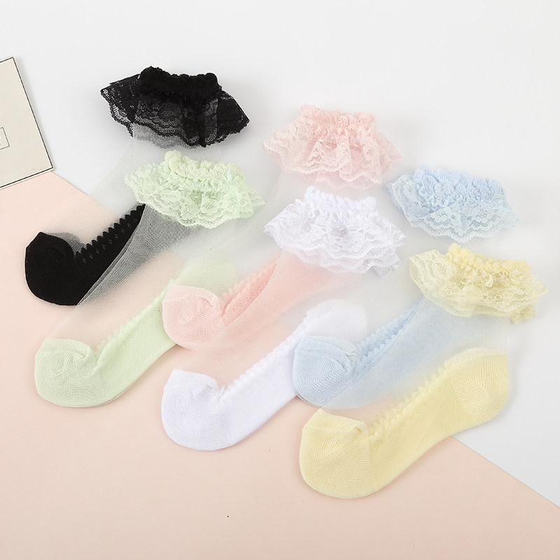 Children's socks summer thin girls lace socks lace princess socks baby girl baby stockings crystal stockings ultra-thin