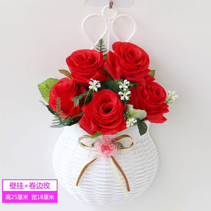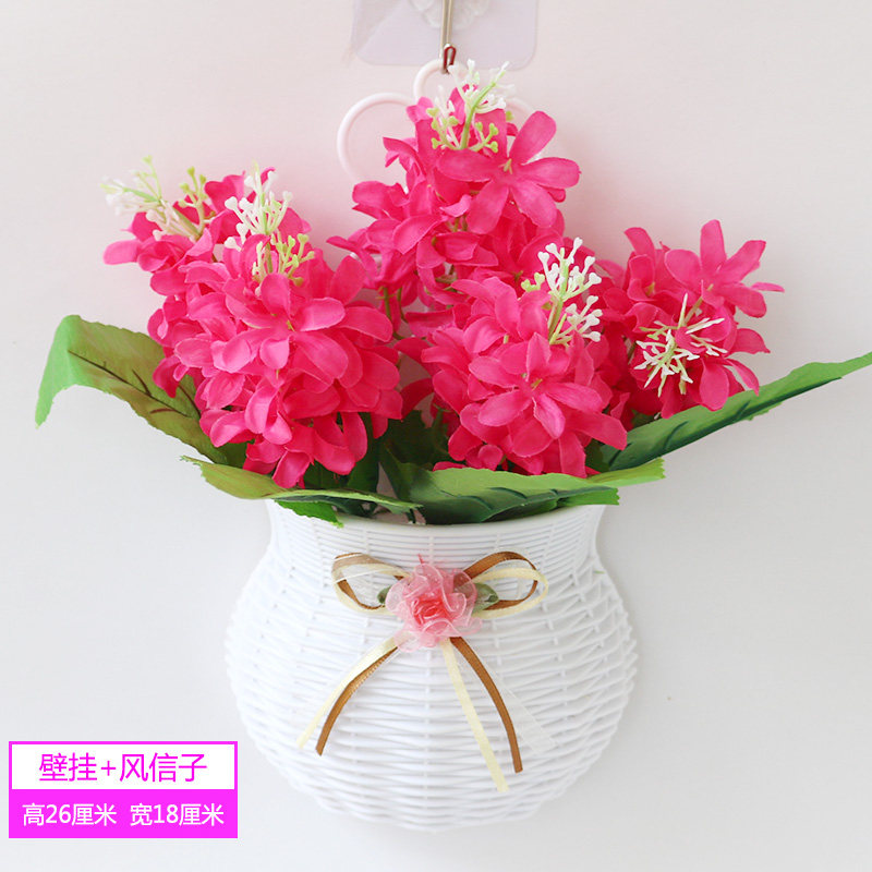 Wall hanging flower basket simulation plastic silk flower living room indoor and outdoor flower arrangement pendant wall cover decorative flowers and grass fake flowers and green plants