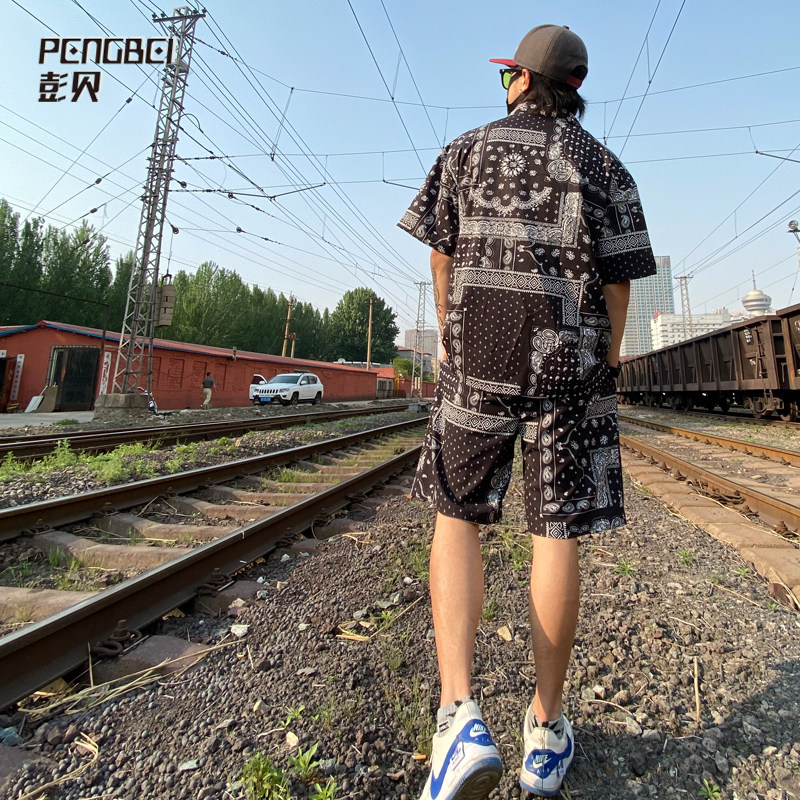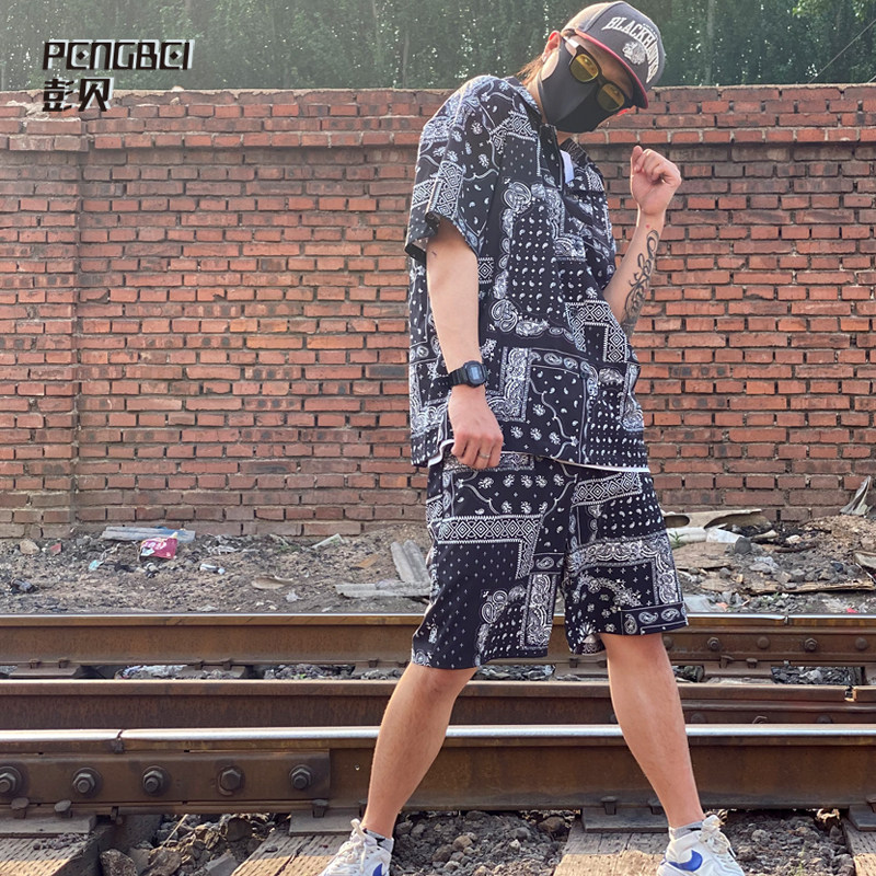 Summer Short Sleeve Suit Cashew Flower Shirt Hip Hop Shorts Skateboard Printing Casual Wear Hip-hop Team Custom 099