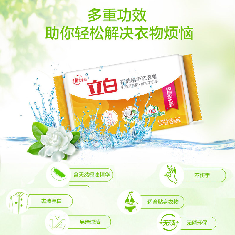 Upright White Laundry Soap Coconut Oil Essence Laundry Soap 101G* 6 blocks without phosphorus without hurting hands to stain the bright white