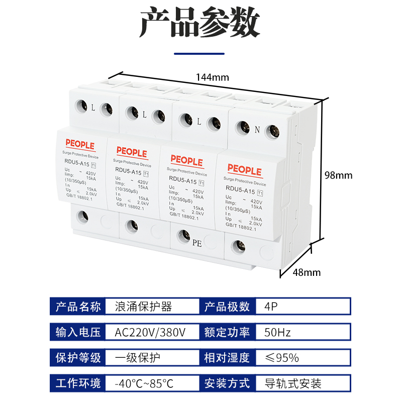 RDU5 surge protector household 2P220V lightning protection device switch surge protector 38 people's electrical appliances