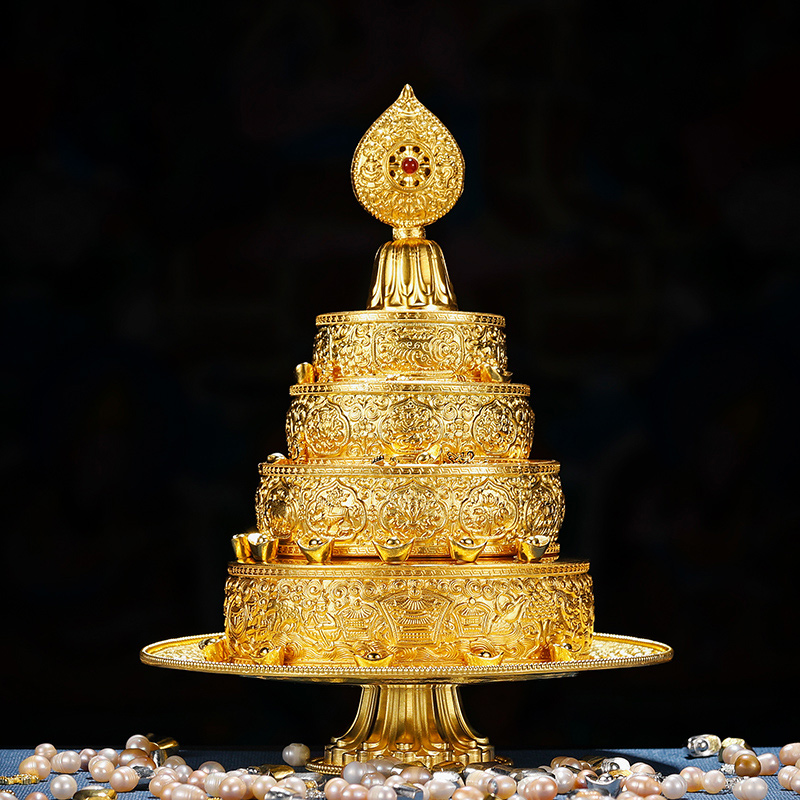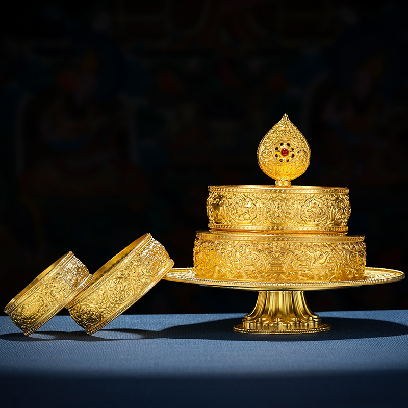 999 Sterling Silver Manza Plate Sterling Silver Gilt Gilt Mancha Luo repair plate Complete set with tray Eight Treasures free Gemstone small