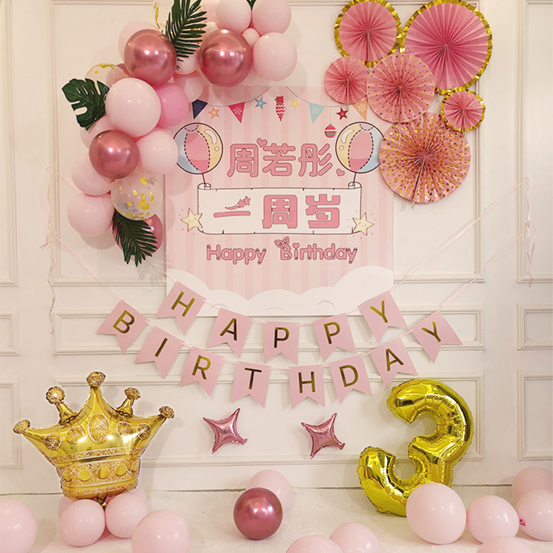 Baby girl's first anniversary 100-day feast scene Net red ins decoration 2-year-old birthday decoration background wall children's balloons