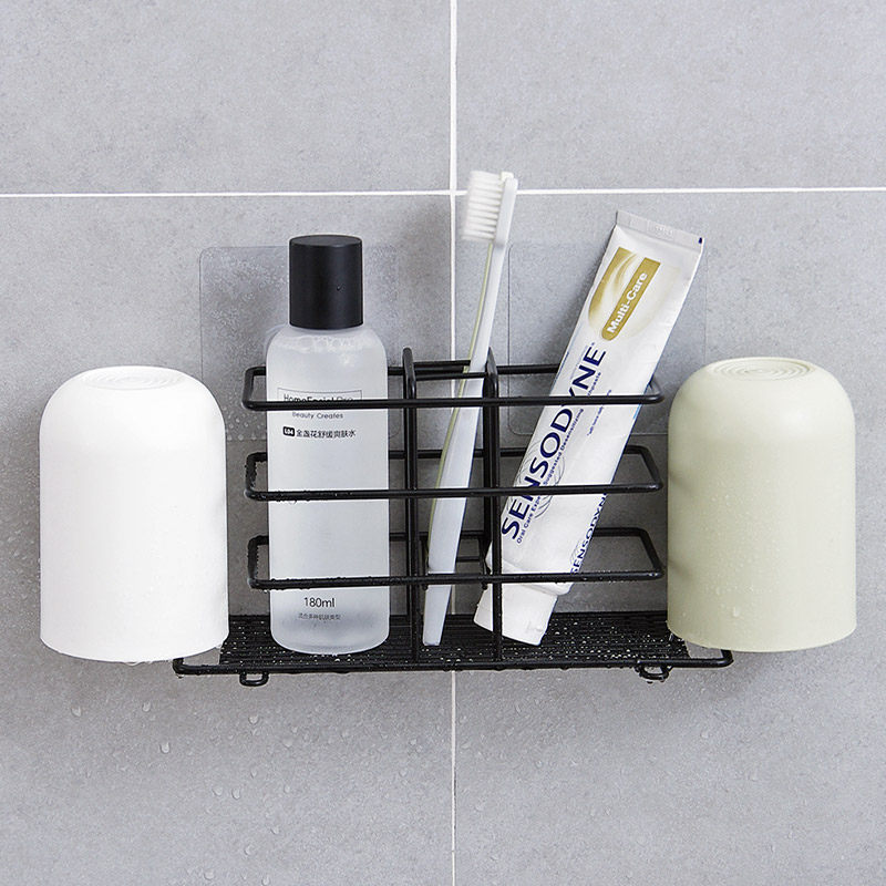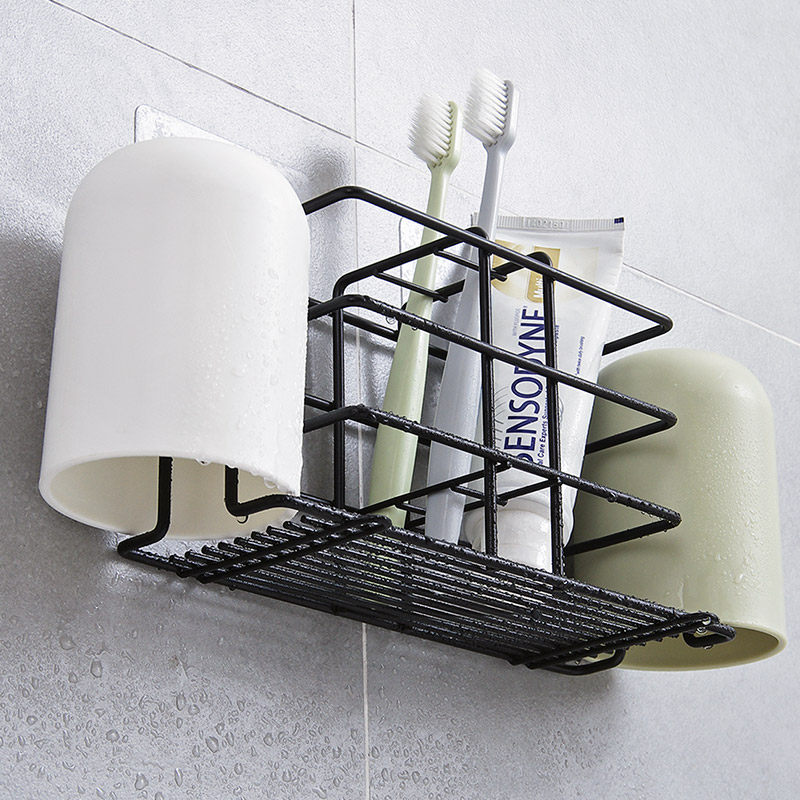 Uthünü Perforated Iron Art Toothbrushes Shelf Home Wall-mounted Tooth rack Toothbrush Gargle Cup containing shelf