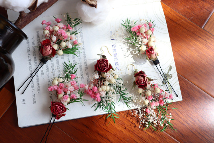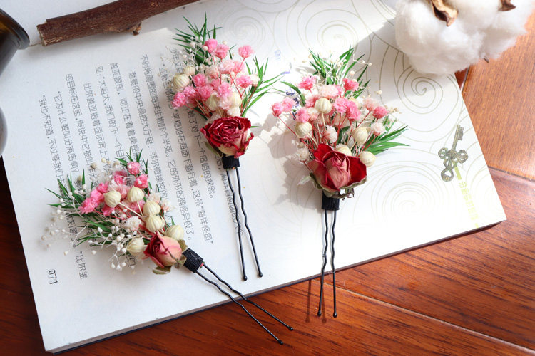 3 dry flower rose hairpin Dry flower rose 925 tremella hook dry flower rose ear clip 3 rose hairpin Rose 925 tremella hook 3 rose hairpin Rose ear clip