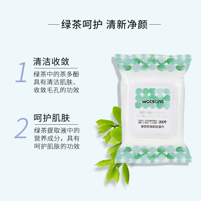 Watsons green tea oil control hyaluronic acid makeup remover cotton wipes 25 pieces mild deep clean face clean