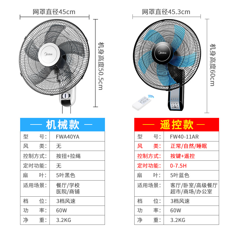 Beautiful wall fan 16 inch remote control home wall-mounted hanging fan shaking dining hall large wind electric fan FW40-11AR