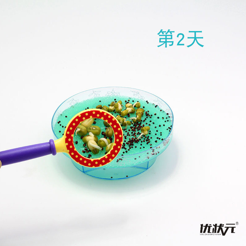 Primary school students seed petri dish children's magnifying glass plant observation germination kindergarten seed cultivation mung bean chrysanthemum
